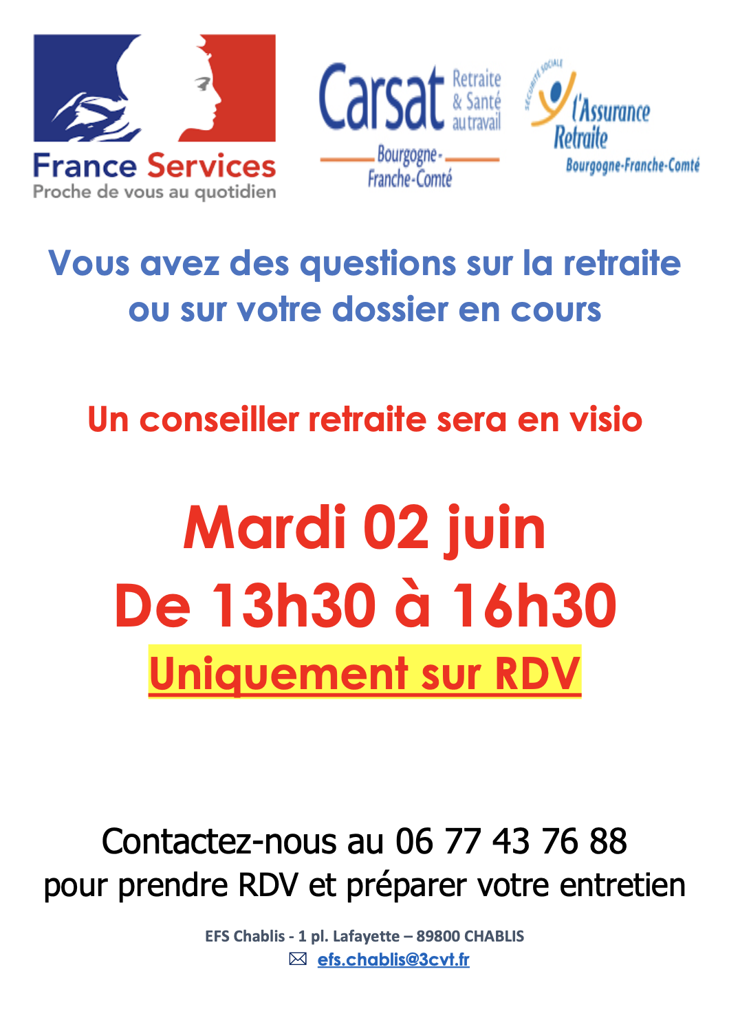 Pour tous renseignements concernant les permanences de Chablis, veuillez contacter Christine et Mégane : Prise de rdv par mail efs.chablis@3cvt.fr ou par téléphone 06 77 [...]